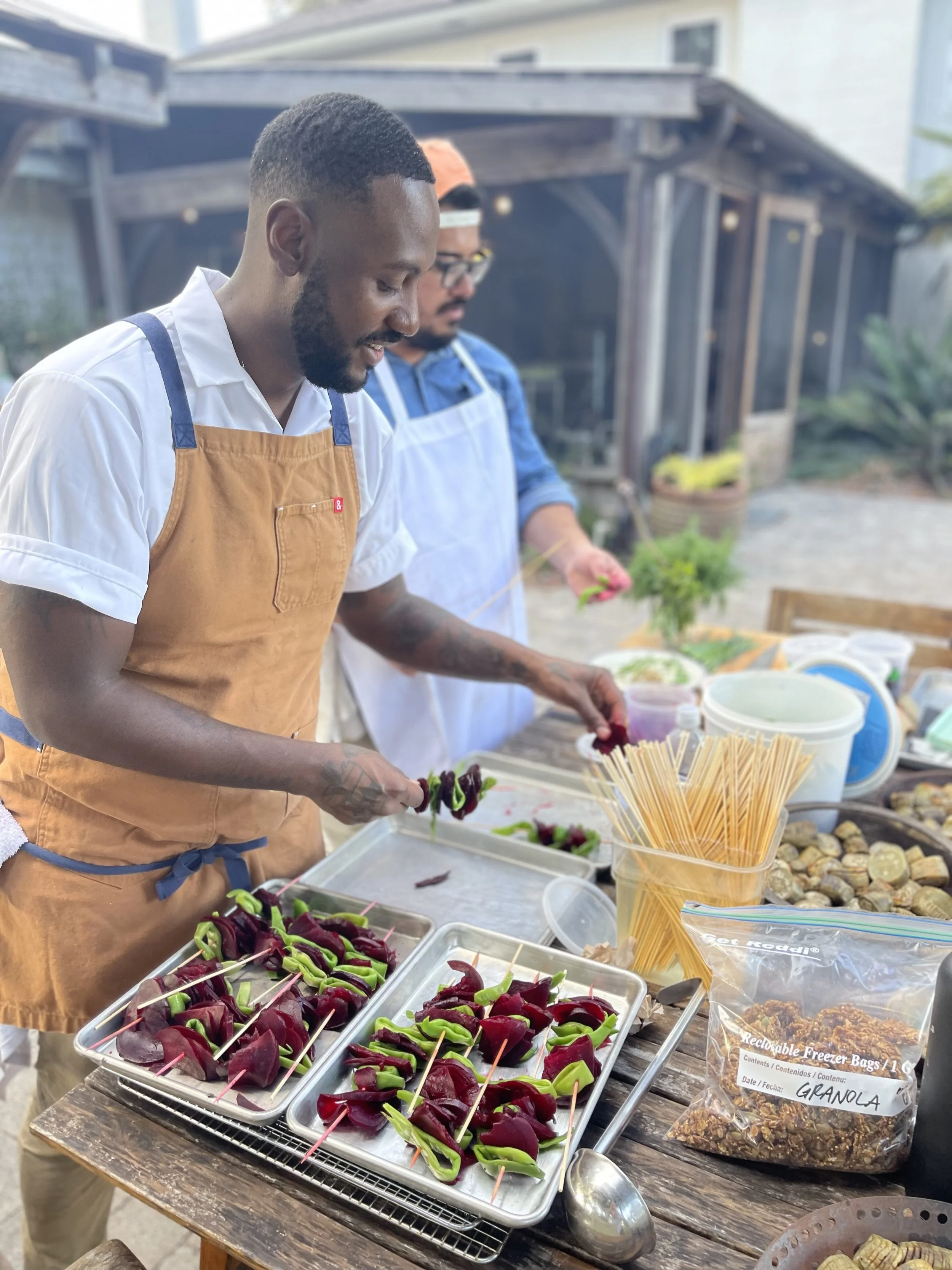 Come join us for a true culinary treat with Chefs Phil Bailey-Anderson and Nate Barksdale of Afternoon Restaurant! Spring in north Florida brings an insane bounty of local farm food, and we are so lucky to have Phil and Nate as our highly regarded chefs to capitalize on such goodness. Chef Phil Bailey-Anderson has been curating farm-fresh dining experiences here in north Florida for several years now, and knows how to ingeniously highlight the perfect simplicity of fruits and vegetables grown right here in our own backyard. Chef Nate Barksdale brings old world skill to the table with his years of experience in butchery and meat curing. Join us for a truly delightful multi-course meal celebrating the lovely micro-climate of Gainesville and the plethora of food provided by this good earth.